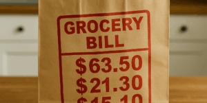 A grocery store bag marked like a tax obligation bill– a pointer that rising cost of living quietly drains house budget plans, leaving families with longer invoices and lighter bags. …